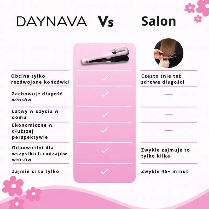 🌸 Usuwa rozdwojone końcówki bez skracania długości